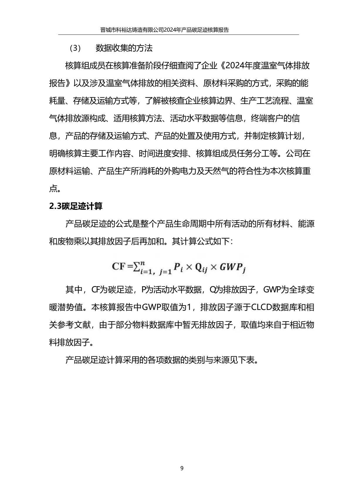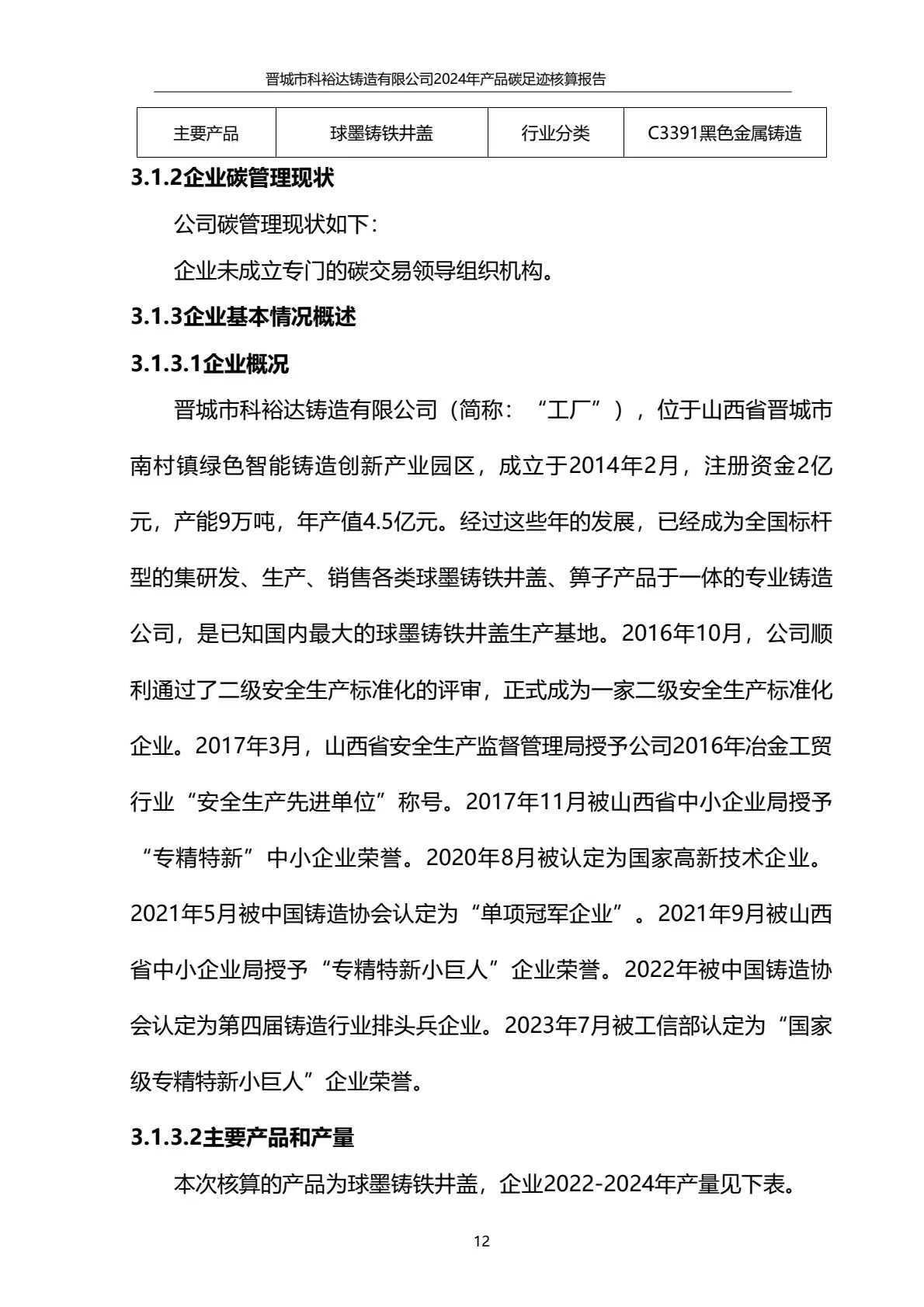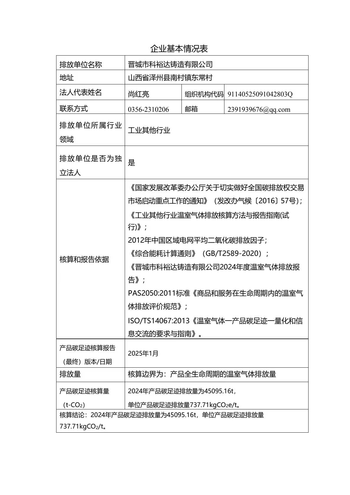 晉城市科裕達(dá)鑄造有限公司碳足跡報(bào)告